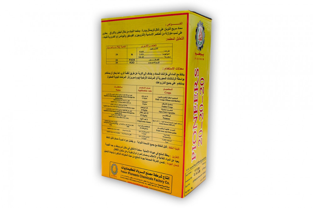 - محتويات السماد: النتروجين 20%، الفسفور 20%، البوتاسيوم 20% .